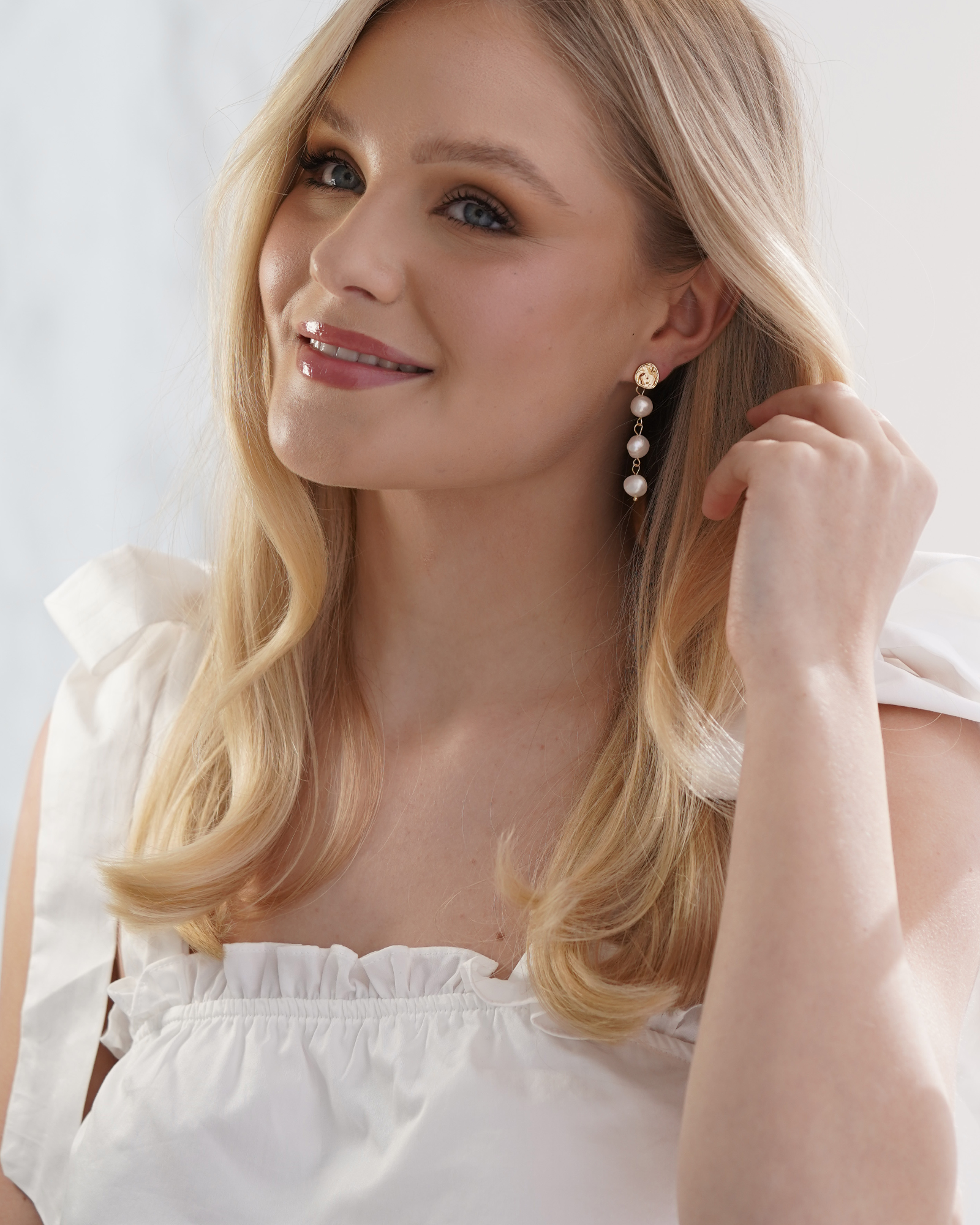 Elegant and timeless, these pearl drop earrings feature softly irregular freshwater pearls suspended from a textured gold stud. Designed to move beautifully with you, they are the perfect finishing touch for brides, bridesmaids, or elevated everyday wear.