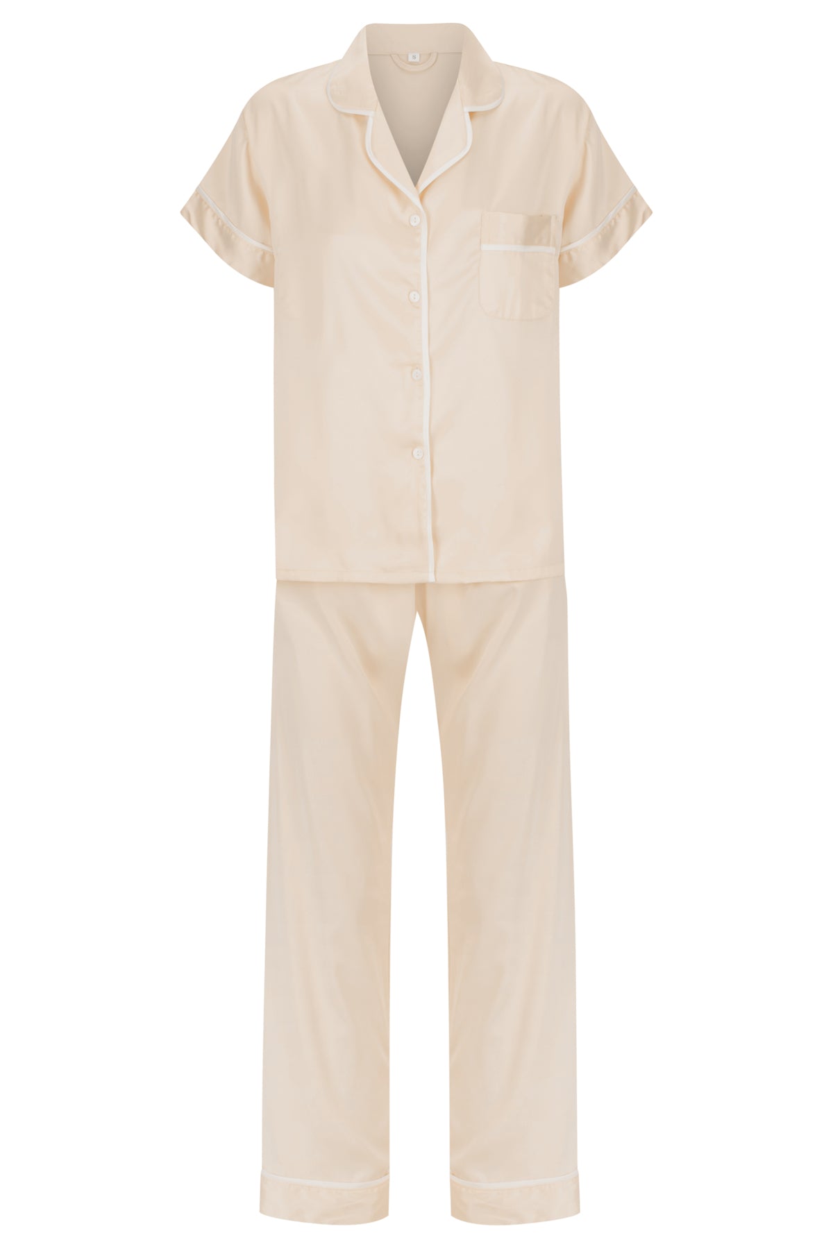 Our Champagne & Oyster Collection is the epitome of elegance, perfect for sophisticated wedding mornings. These soft neutral tones flatter every bridal party and look stunning in photos. Available in silky satin or breathable cotton, each set comes in inclusive sizing with the option for personalised embroidery. A timeless choice for brides and bridesmaids, Champagne and Oyster pyjamas make the perfect getting-ready outfit or bridal party gift