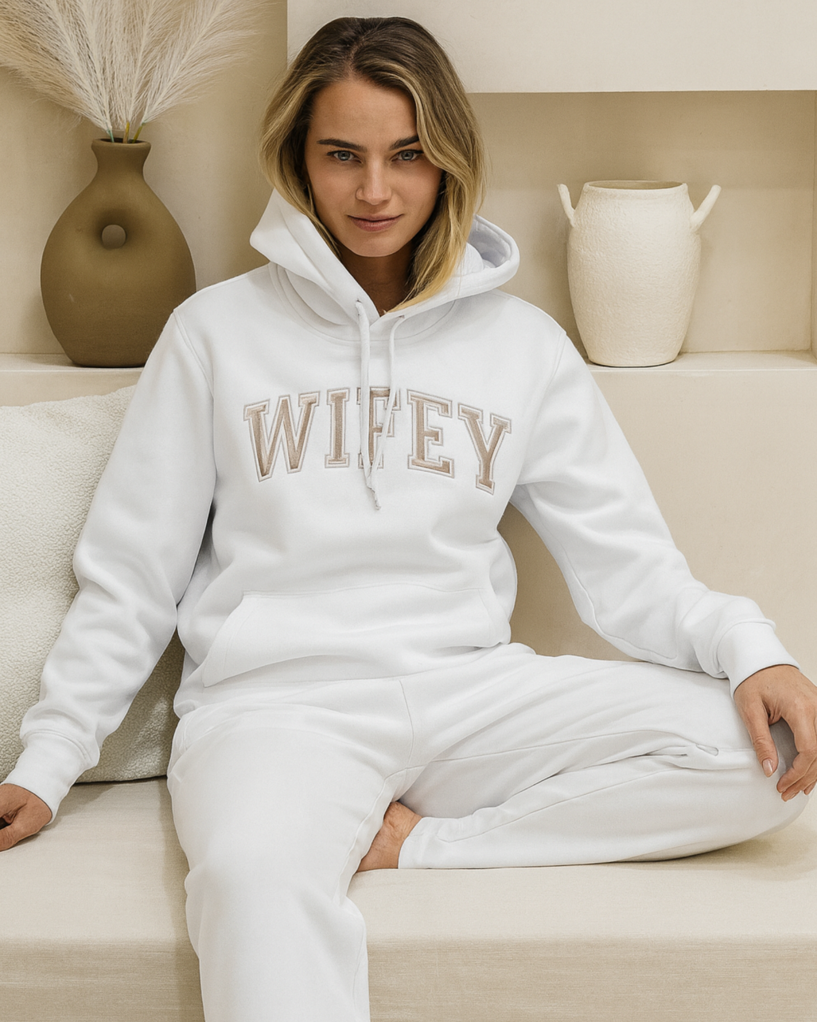 Embroidery for this range is fixed to our signature Bride or Wifey designs. Personalised names or dates aren’t available for this collection, but we do offer personalised embroidery on other loungewear styles.
