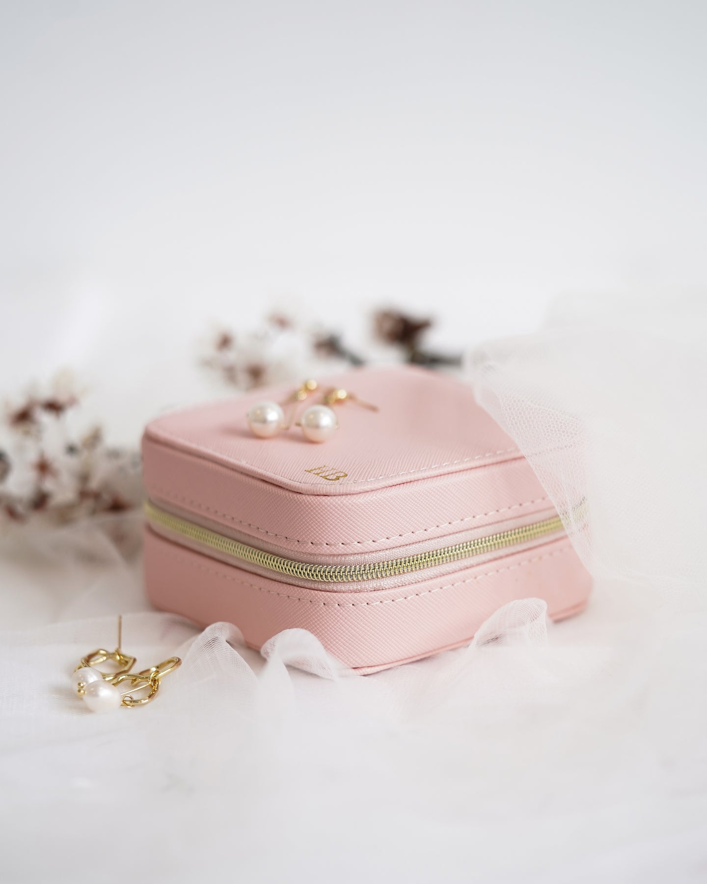 Personalise it with gold foil or blind embossing for a unique and thoughtful touch. Whether it's for a wedding, bachelorette party, or special event, this jewellery case is a memorable keepsake that your bridal party will cherish for years to come. Measuring 12cm x 12cm x 6cm, it is compact yet spacious enough to store your essential jewellery pieces securely.