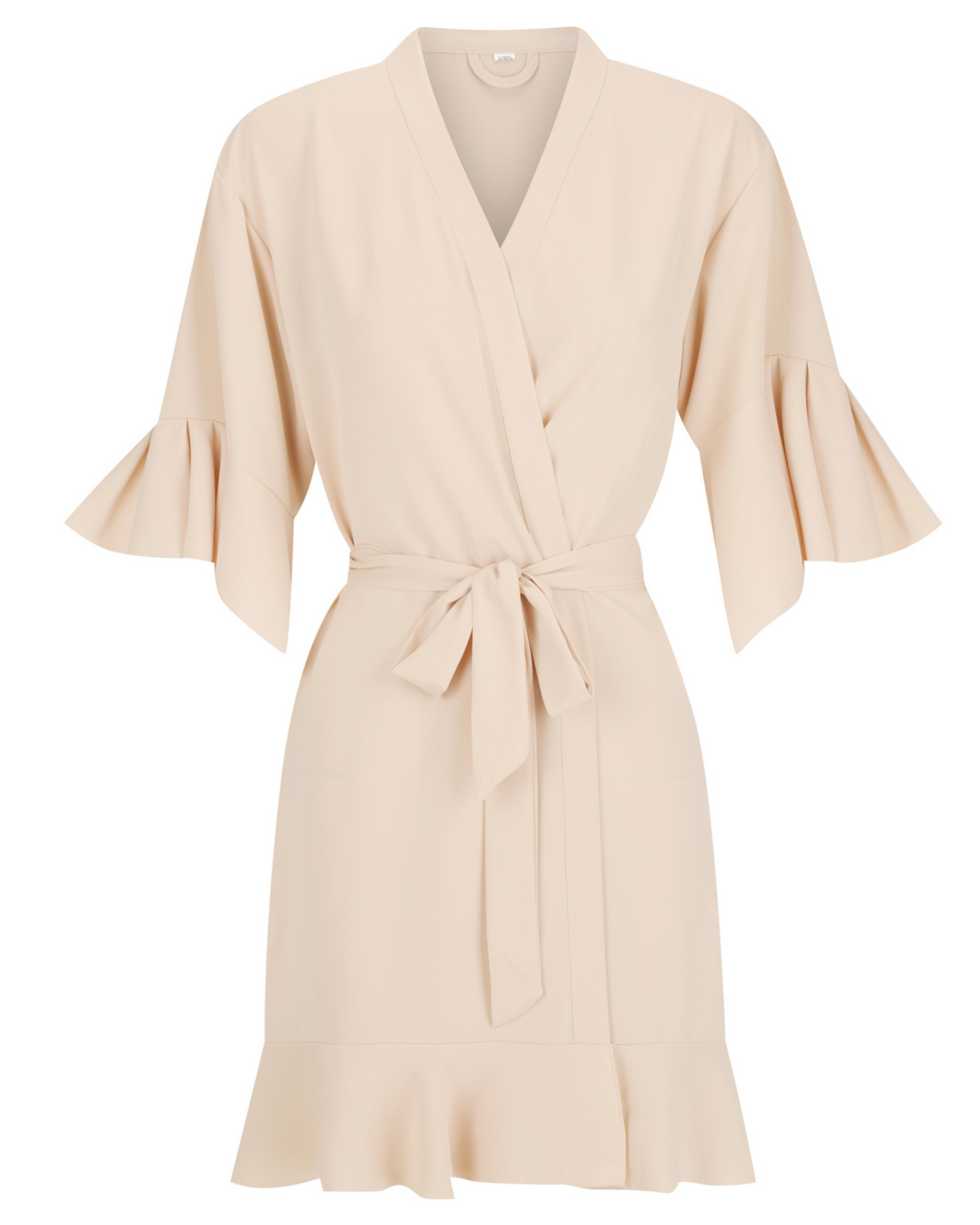 - Ruffle trim on cuffs and hem for a feminine finish